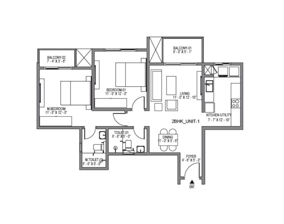 Sizes: 1, 2, 3 & 4 BHK Apartments