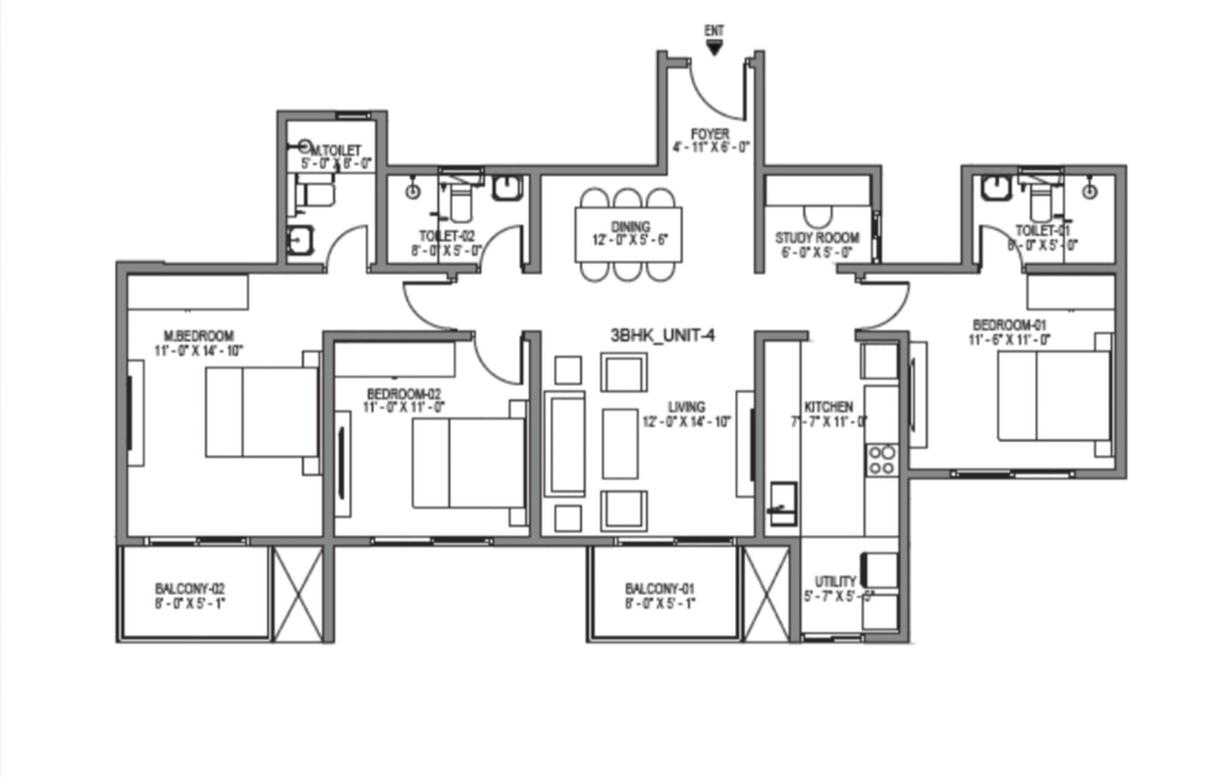Sizes: 1, 2, 3 & 4 BHK Apartments
